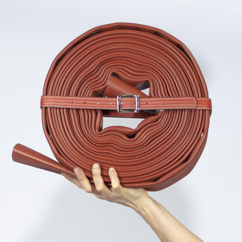 Cette ceinture offre une seconde vie à une lance à incendie. Cette matière insolite aux propriétés techniques et esthétiques permet d’obtenir une ceinture à la fois élégante et solide qui ne s’usera pas avec le temps !