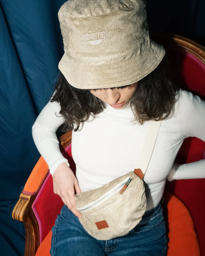 Adoptez l’élégance discrète et le confort absolu avec le Sac Banane Binette – Velours Côtelé Beige Sable. Son tissu doux et chaleureux en velours côtelé upcyclé, associé à une teinte neutre et raffinée, en fait un accessoire aussi polyvalent que tendance, parfait pour un hiver tout en douceur.